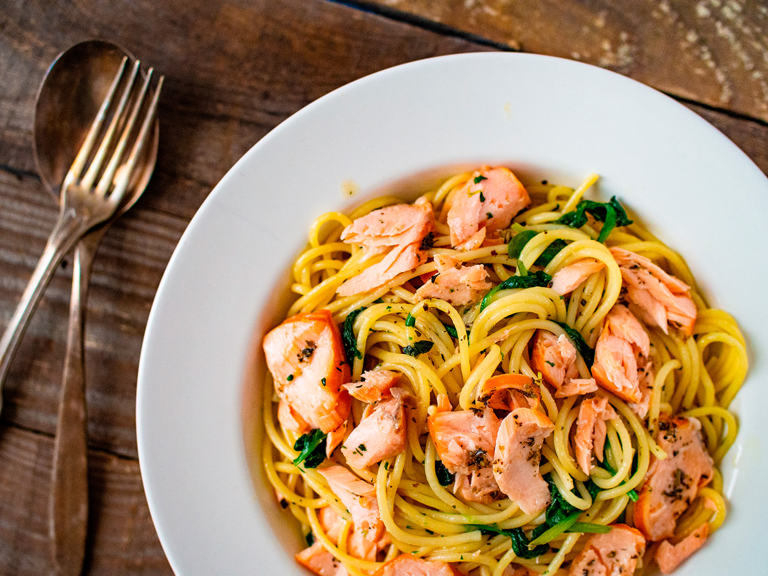 • Pasta con salmón y espinacas: agrega un puñado de hojas frescas al final de la cocción. Su color y sabor combinan con la salsa cremosa. Esta combinación funciona muy bien con diferentes tipos de pasta, desde Spaghetti hasta Fettuccine o Penne Rigate.
