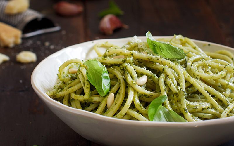 Receta destacada: spaghetti con salsa de albahaca y piñones