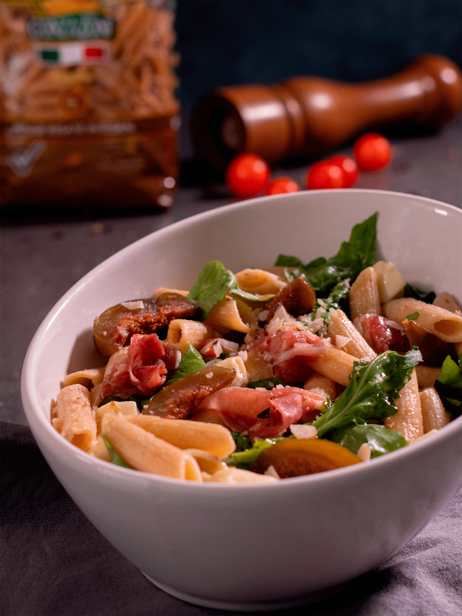 Ensalada de Penne Rigate Integral y jamón serrano