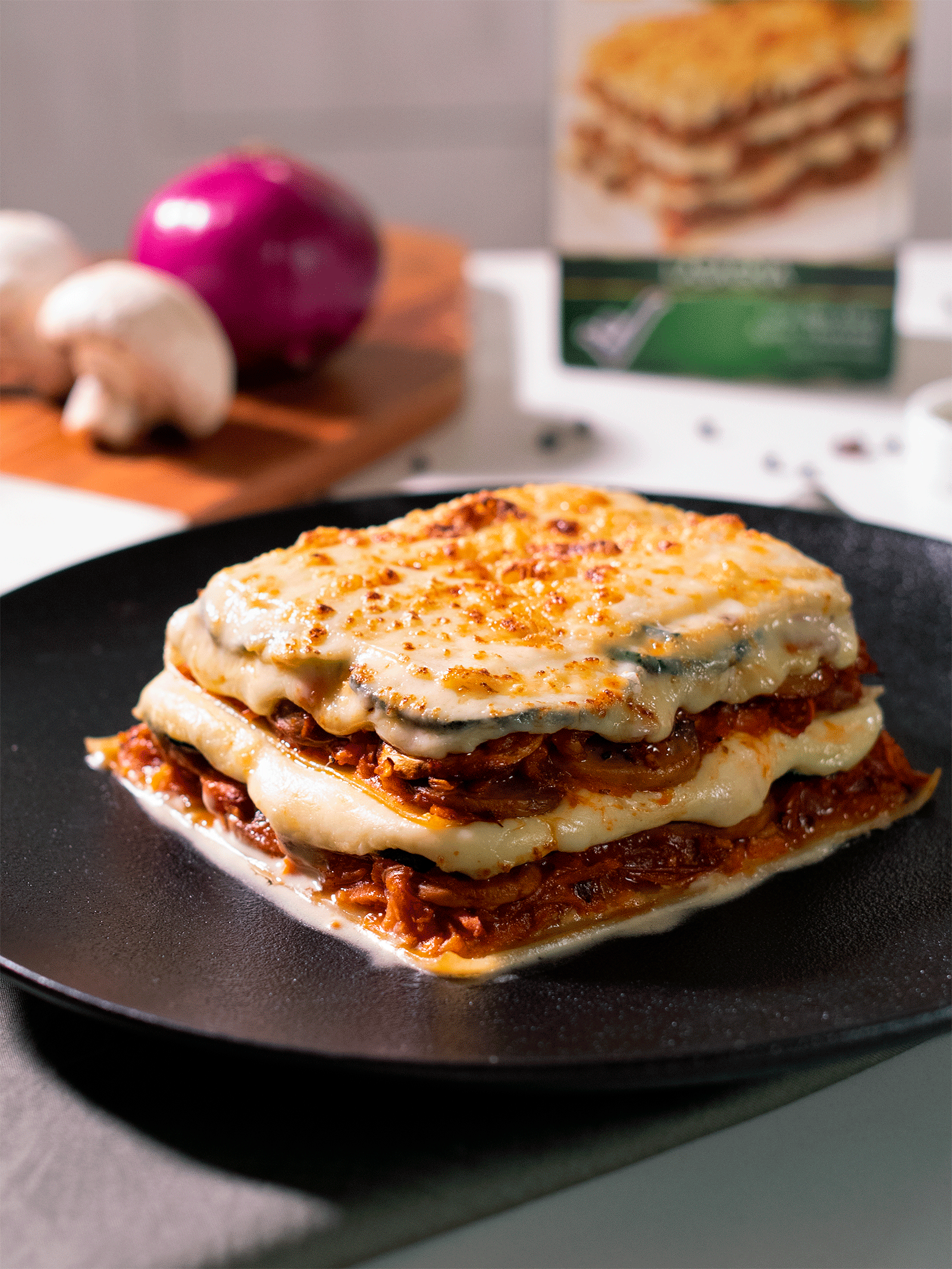 Lasagna vegetariana bolognesa con champiñones