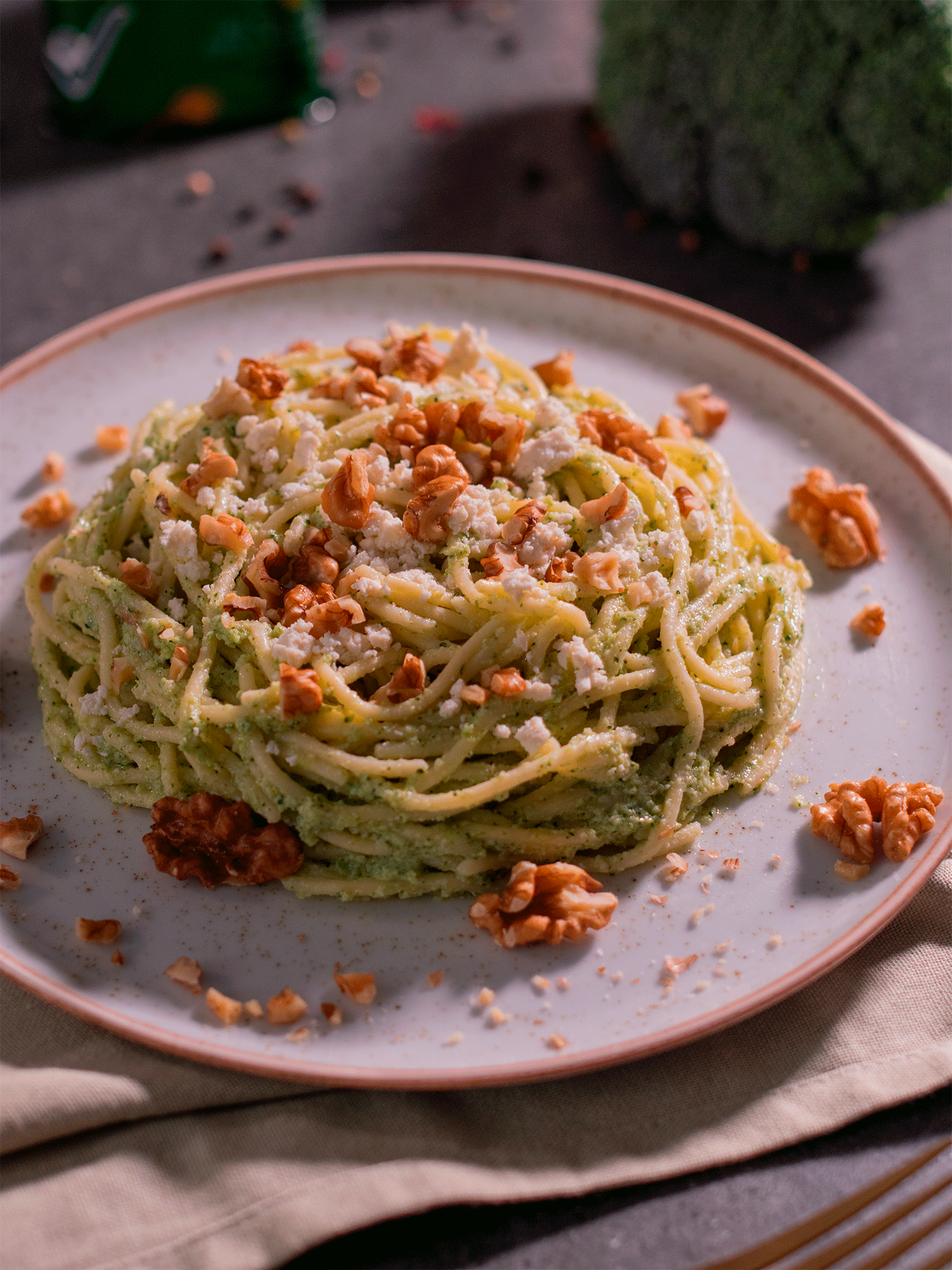 Vermicelli con pesto de brócoli y ricotta